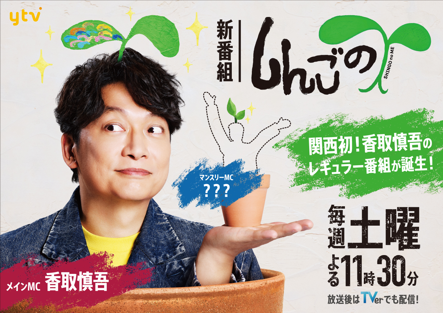 香取慎吾自身初・関西ローカルレギュラー新番組『しんごの芽』(正式タイトルの芽は芽の絵文字)が読売テレビにて2026年1月10日より(毎週土曜23時30分から放送)放送開始いたします。また、インパクト大の番組ビジュアル&香取作の番組ロゴも公開されました。